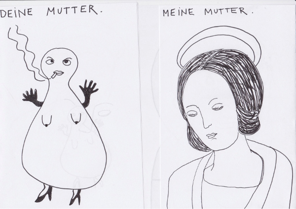 Man muss bergeweise kleines Zeug kaufen, das dann wieder überall herumliegt. Und keine Nüsse! Welches Kind freut sich denn bitte über Nüsse im Adventskalender?!? KEINES! Nein, auch nicht, wenn sie golden angemalt sind. Auf Nüsse ist das moderne Kind sowieso allergisch. Entweder das, oder man verschluckt sich dran, oder zerquetscht sich die Händchen am Nussknacker.  Und der Nussknacker ist ein weißer alter Mann,  weckt also extrem unangenehme Assoziationen an SUV- Fahrer und Kinderschänder. Nüsse sind potentiell tödlich, ach was rede ich: Nüsse sind der Tod. Keine Nüsse! Es müssen Kreisel sein, Stifte,  Haarspangen, Tierfigürchen und noch Schokolade und Gummibärchen, also Zucker, also Gift, also Nervengift. Und drumherum: Krepppapier, Sternchen, ausgeschnitten, Gold und Silber, Stoffbeutelchen, menschliche Kreativität. Die Bastelei muss man nachts machen, wenn die Kinder schlafen. Man darf dabei nicht rauchen, wegen der Kinder. Darf keine laute Musik dabei hören, weil die Kinder schlafen. Darf erst recht nicht kiffen, kein MDMA, kein Speed, kein Koks, kein Heroin nehmen. Ja ok, Rotwein vielleicht. Aber davon wird man so müde. Alle schlafen und man sitzt da, in absoluter Stille und bastelt, mit Verzweiflung im Herzen, weil man endlich mal in Ruhe nachdenkt und einem klar wird, was alles nicht gut läuft und dass man nicht genug Krams für die Beutelchen gekauft hat und morgen NOCH MAL los muss und außerdem, immer noch keine Weihnachtsgeschenke besorgt hat und dann noch die Weihnachtsfeier in der Kita vorbereiten muss und sich um den Bibliotheksausweis kümmern und man schon seit Wochen den Briekasten nicht aufgemacht hat, weil man sich noch von der letzten Briefkastenöffnung Ende Oktober erholen muss und warum einen eigentlich damals mit 31, dieser tolle Typ nicht gewollt hat und dass man immer noch traurig deswegen ist. Und am Morgen danach ist man total müde und schreit die Kinder an, weil man so müde ist und die so bummeln und zu spät zur Schule kommen. Der fast fertige Kalender, all die erbärmlichen kleinen Beutelchen kommen ins Bücherregal, hinter die Bücher. Und er ist nicht besonders schön geworden und eine sehr wacklige Angelegenheit, die Beutelchen hängen zu locker an der Schnur, das Ganze sieht so kläglich aus, dabei war er so teuer und hat so viel Mühe, also soviel Schweiß und Tränen gekostet. Und das andere Kind braucht ja auch einen Kalender eigentlich, das ist doch schon fast drei. Und die dürfen das vorher nicht sehen, wegen dem Überraschungseffekt und es ist ihnen egal, wie die Beutelchen aussehen, wichtig ist was drin ist und dann sind sie nicht zufrieden. Iiihh, Schokolade und der Kreisel ist kaputt und die Haarspange ist hässlich. Und helfen kann einem niemand dabei. Oder würdet ihr von eurem Mann verlangen, er soll euch beim Weihnachtskalenderbasteln helfen? Ich glaube, ich könnte mit meinem Mann nicht mehr schlafen, wenn er mir beim Kalenderbasteln geholfen hätte. Frauenkleider dürfte er tragen, oder Kuchen backen, oder Knöpfe annähen. Aber Beutelchen befüllen? Nein! Der Einzige, der mir mal einen Weihnachtskalender gebastelt hat, war mein Vater, aber er hat sich dann trotzdem nicht mehr gemeldet, als ich sechs war und er eine neue Freundin hatte und ich kaufe den Kindern Weihnachtskalender bei Lidl.